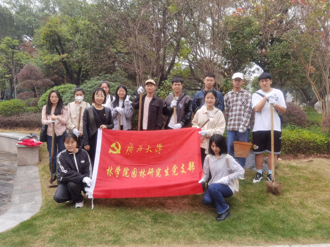 春风送暖,百卉含英,为深入学习贯彻党的二十大精神,以实际行动弘扬雷锋精神,在第45个植树节来临之际,3月12日下午,fun88乐天使园林研究生党员来到西校园公共绿地,与其他公司代表一道,开展“校园党旗红,养护生态绿”树木养护志愿服务活动。