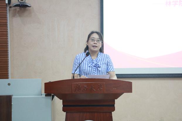 最后,广西国有雅长林场工会主席刘晓璐为基层就业毕业生做岗前培训。她分享了自己在基层工作岗位的经历,介绍了广西林业的可持续发展前景和林场的职能,并对同学们提出了三点期望:一是要艰苦奋斗,耐得住寂寞,保持忠诚和情怀;二是要吃苦耐劳,敢于向领导请教,不断学习以提高自身本领;三是要保持自律,看淡名利,以实际行动脚踏实地,让青春在林业发展的舞台上熠熠生辉。