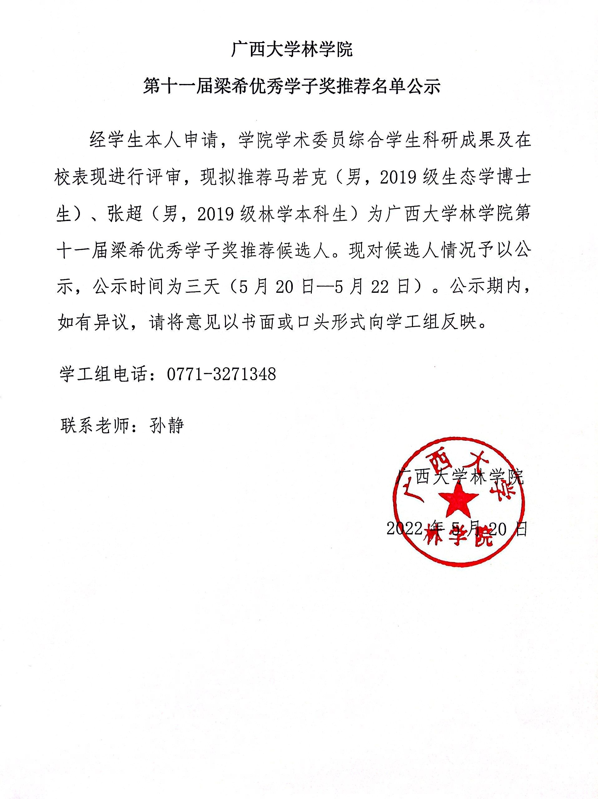 fun88乐天使第十一届梁希优秀学子奖推荐名单公示