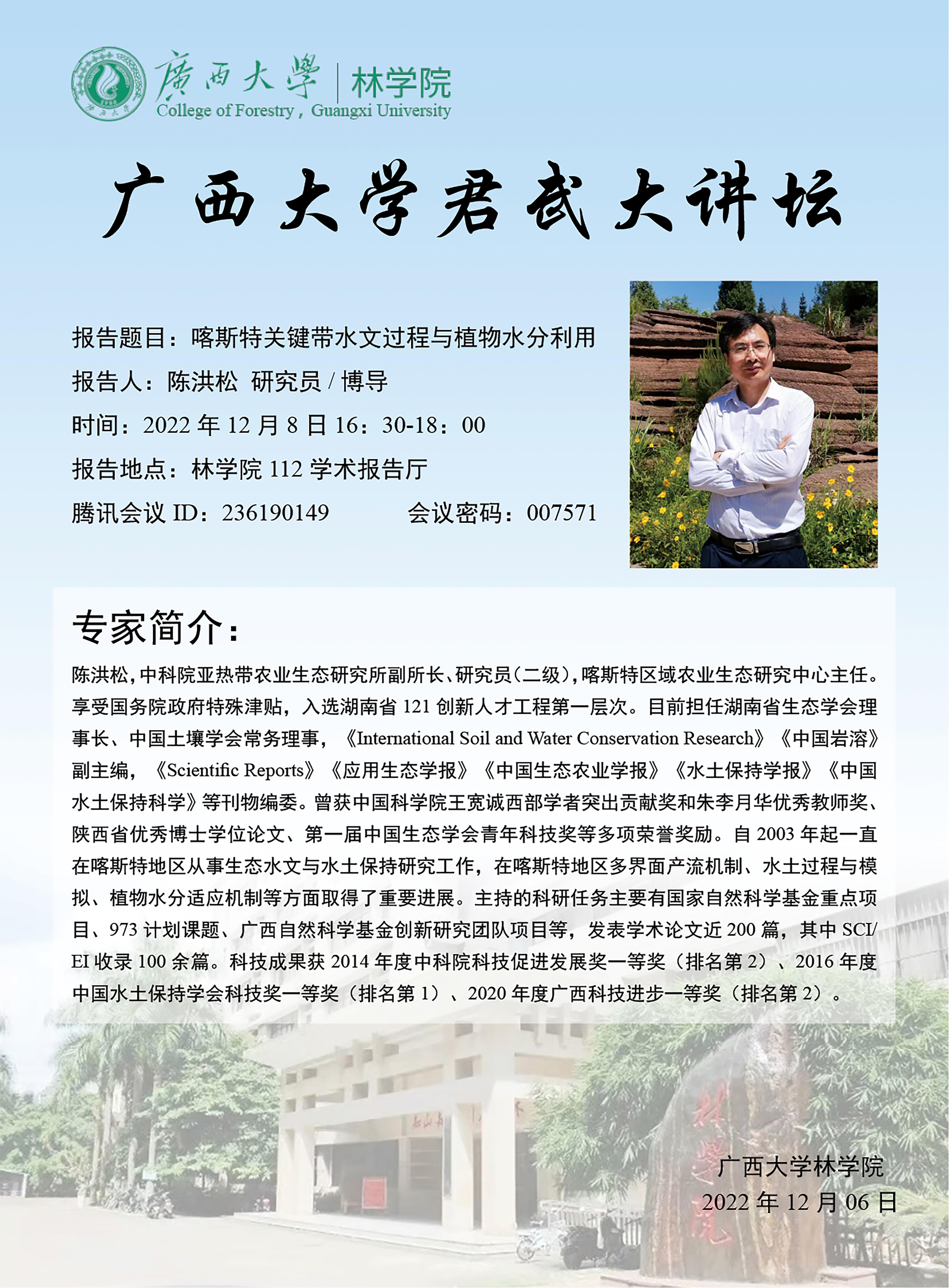 学术报告:喀斯特关键带水文过程与植物水分利用
