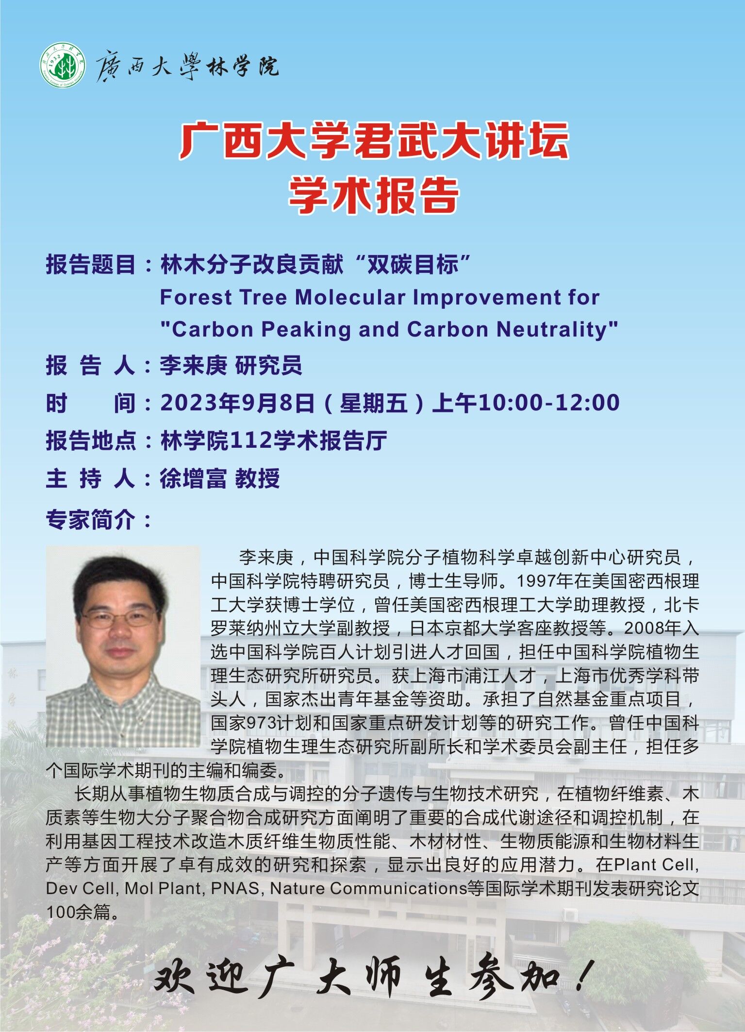 fun88乐天使君武大讲坛学术报告:林木分子改良贡献“双碳目标”