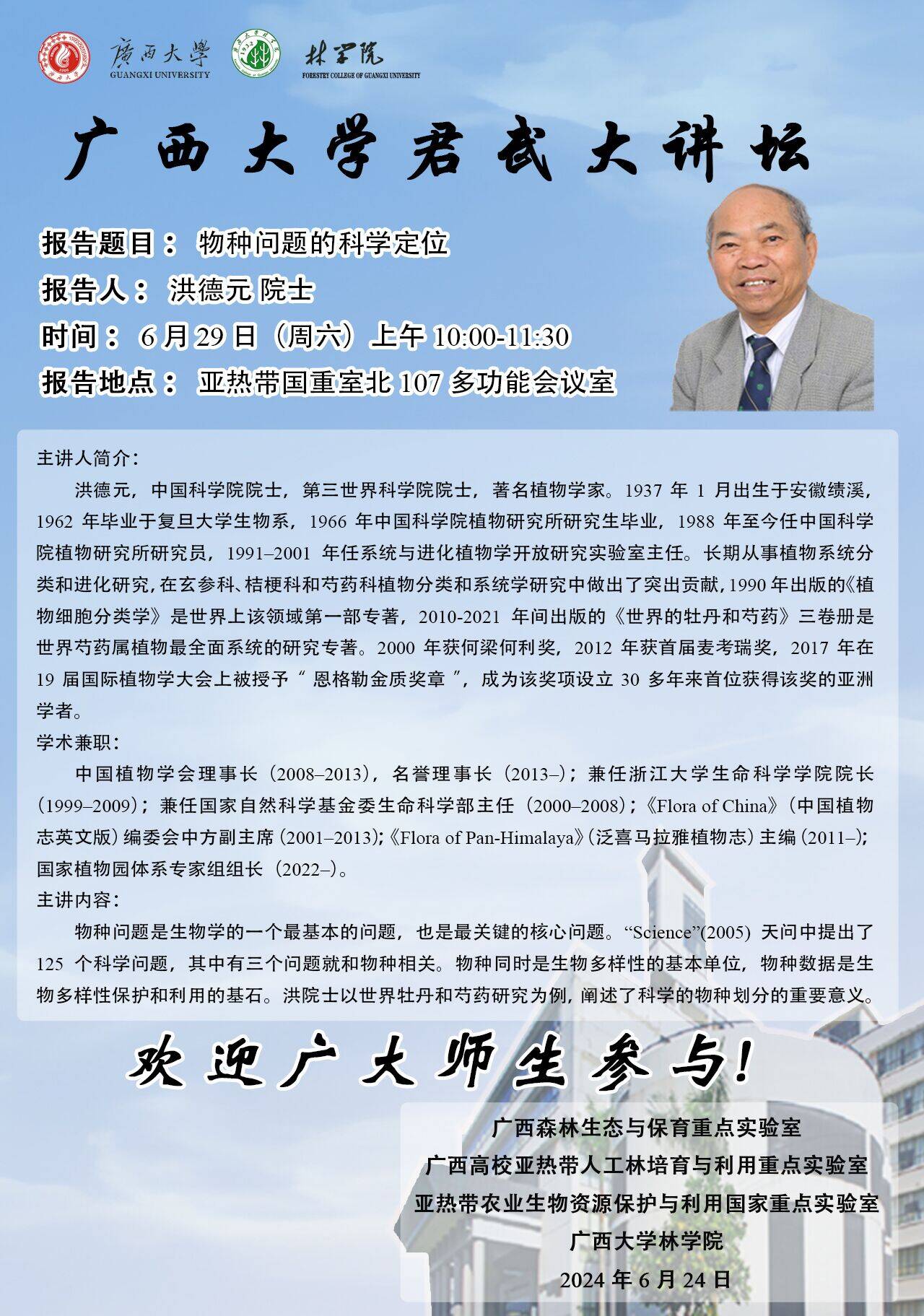 君武大讲坛学术报告:物种问题的科学定位