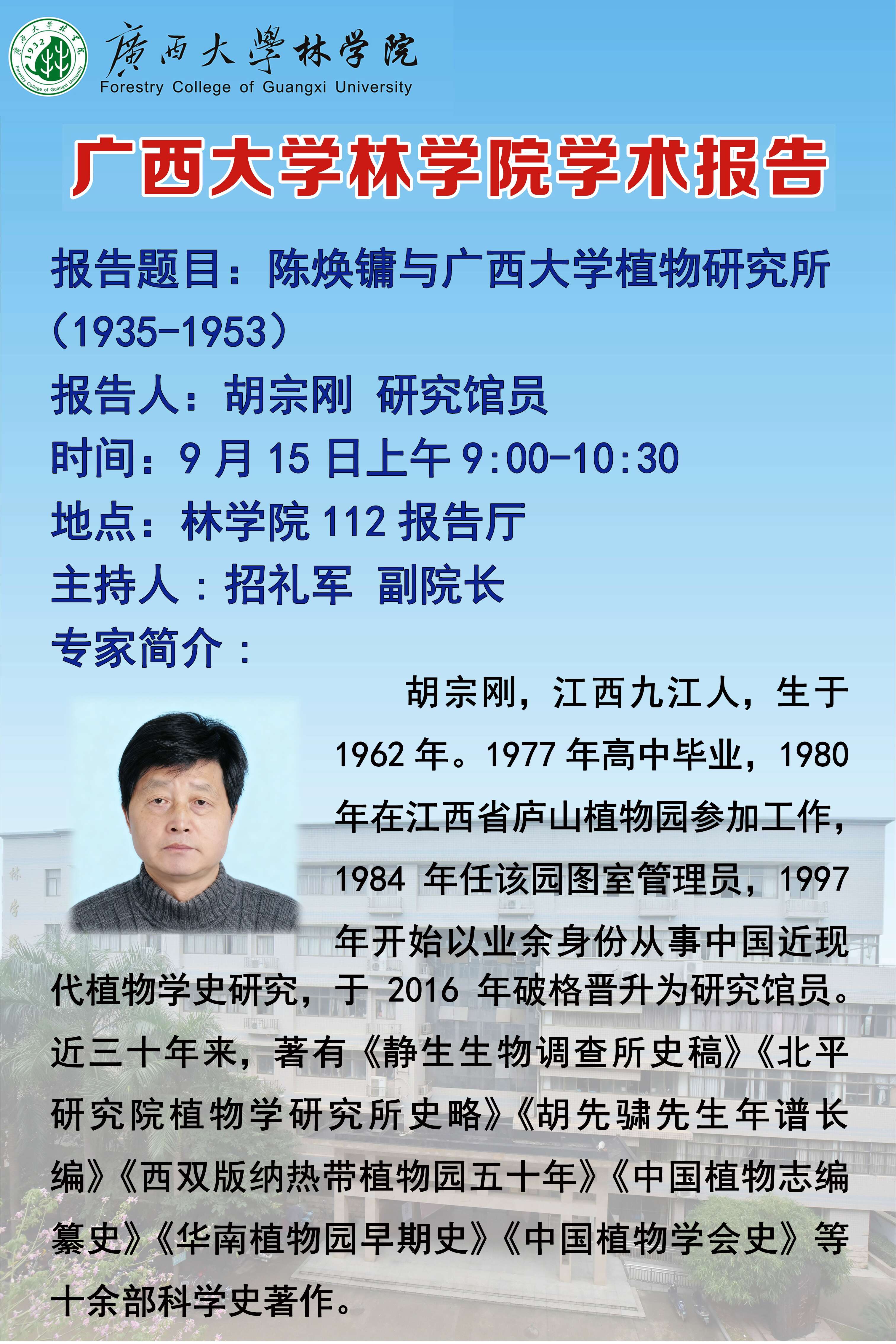 学术报告:陈焕镛与fun88乐天使植物研究所