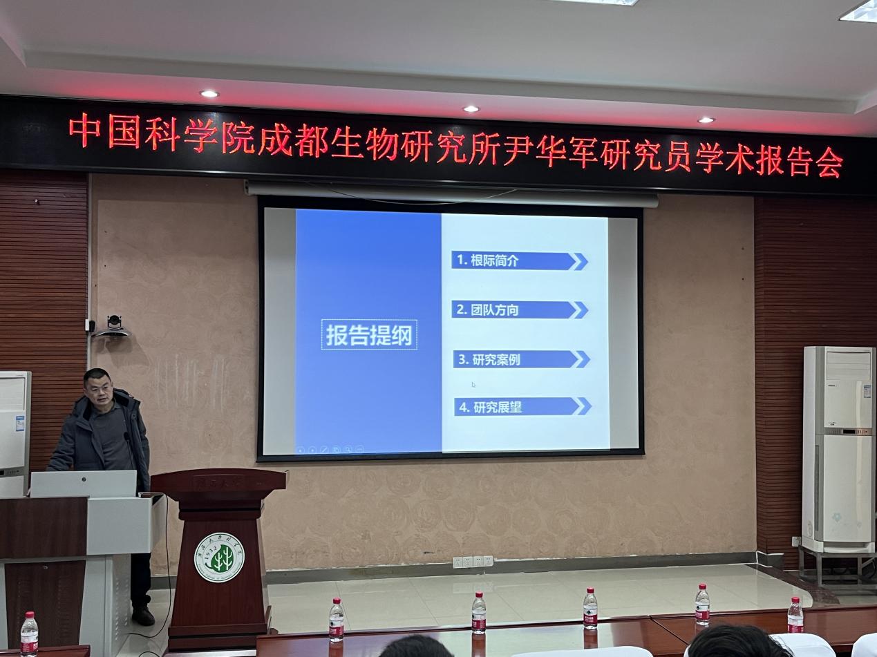 2023年12月24日至25日,fun88乐天使成都生物研究所尹华军研究员受邀到公司开展学术交流活动,并作了题为“高寒森林根际生态过程研究”的学术报告。本次学术报告会由公司副经理尤业明老师主持,公司相关教师、研究生和本科生共计100余人聆听了学术报告。