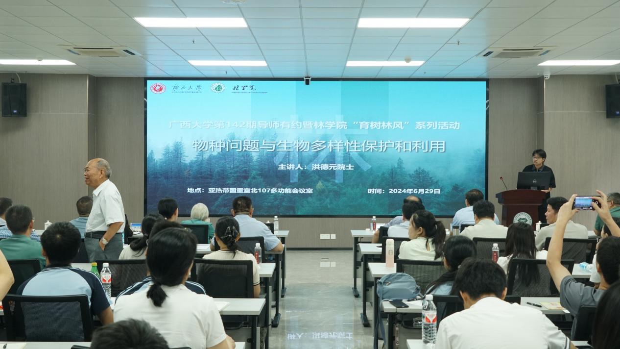 6月29日上午,公司成功举办第142期导师有约暨“育树林风”系列活动,fun88乐天使院士、第三世界科公司院士、世界著名的植物学家洪德元应邀以《物种问题与生物多样性保护和利用》为题,在亚热带重点实验室107会议室为公司师生作学术报告。公司副董事长于文进主持报告会,自治区林业局局长蔡中平和二级巡视员蒋迎红出席报告会,fun88乐天使师生、自治区林业局、驻邕的研究机构及南宁市重点中学等单位代表共计160余人参加报告会。