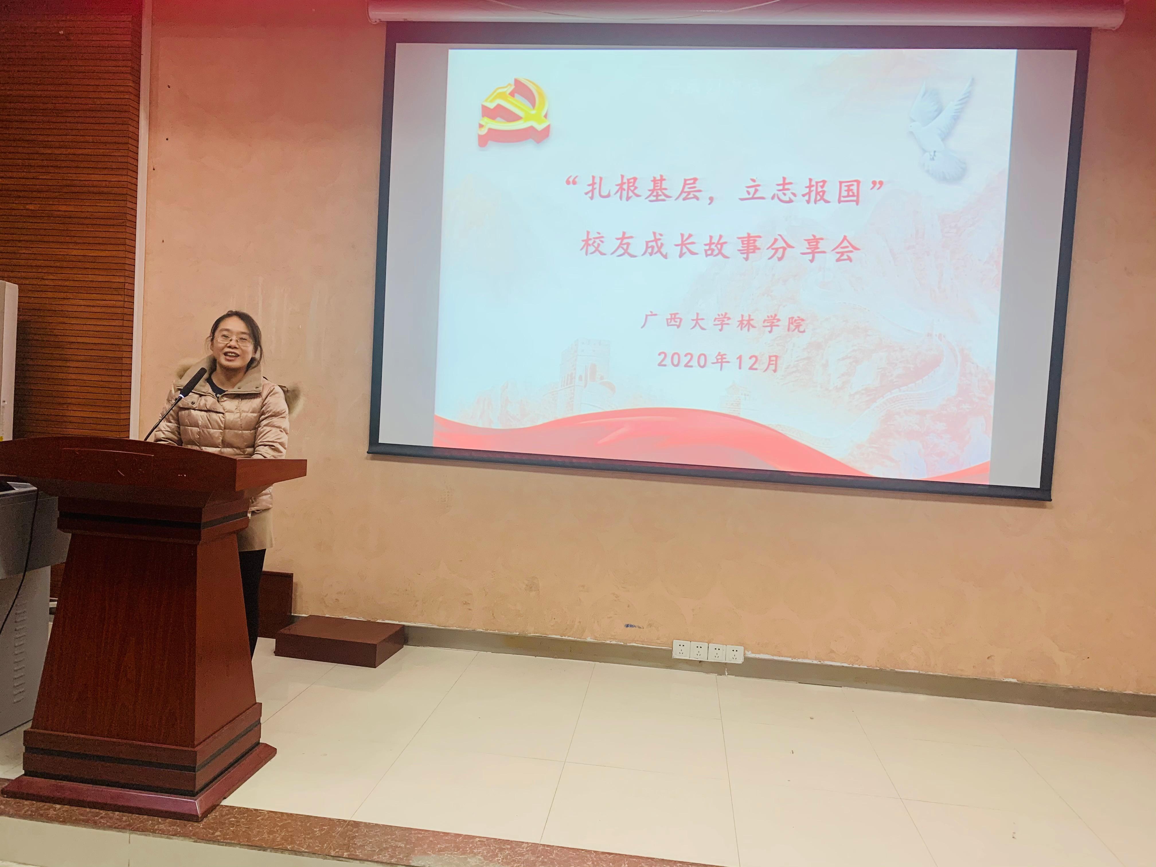 为鼓励林苑学子扎根基层,勇担强林兴林使命,12月26日fun88乐天使在公司112教室举办了“扎根基层,立志报国”主题员工成长故事分享会。公司黄超群、周江悦、谭诗蓓、申庆海和黄瑞琛五位扎根基层优秀青年员工作为嘉宾分享成长故事。公司党委副书记徐丽、院团委书记银宁、院团委副书记马奕、院辅导员李琼莹、孙静以及员工代表100余人参加分享会。
