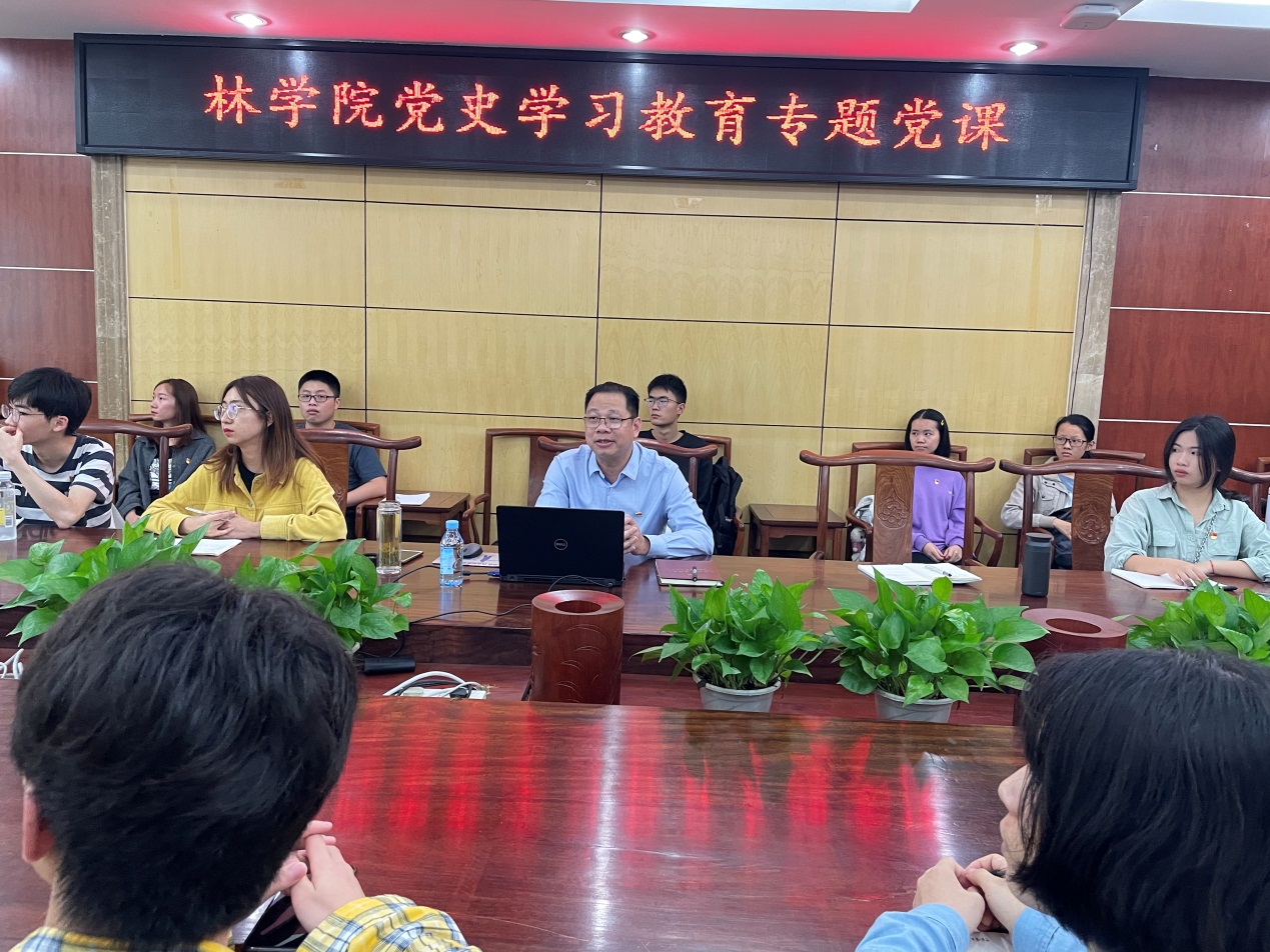 4月24日下午,公司党委书记覃宪儒在fun88乐天使二楼会议室给fun88乐天使林学本科生党支部全体党员讲授《新民主主义革命时期》党史学习教育专题党课。